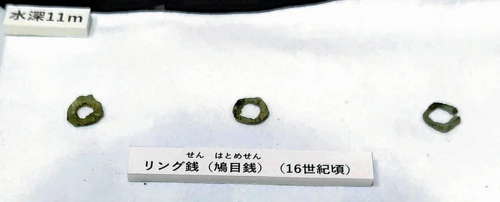 水深約11 m、18 m、25 mなど、複数地点で遺物が集中していたという報告があり、ただの偶然の散布ではなく、 意図的な奉納の場 として使われた可能性も示唆されています。また湖底という環境において、さし銭(銭をまとめて吊るした形)の保存状態も良く、比較的まとまって残っていた点は、水中考古学の醍醐味を物語っています。