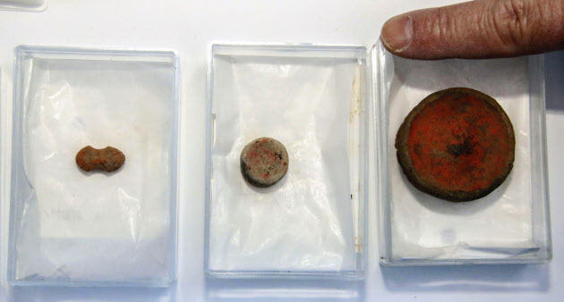 遺物の大きさは長軸2.4cm、短軸1.4cmで、地表から約3m下の地層から見つかりました。