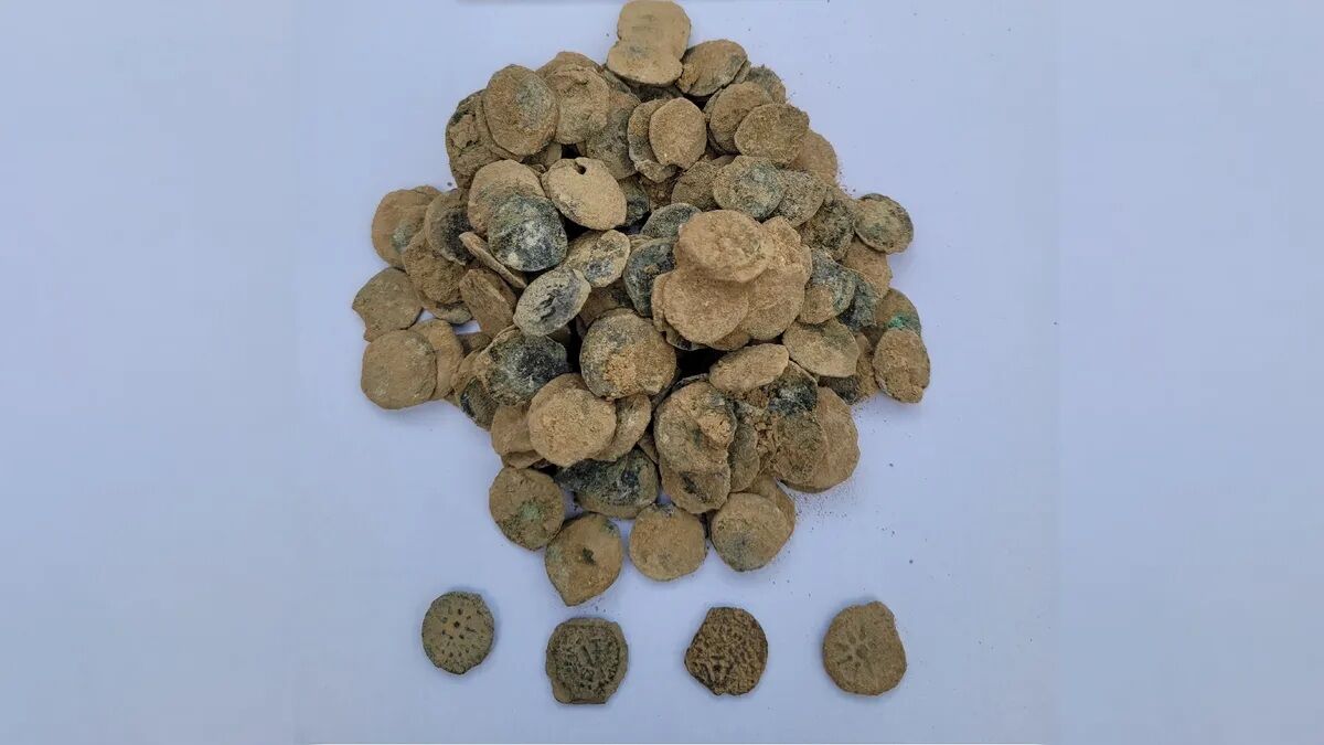 掘り出された銀貨は、見たところ同一種で揃っており、表面にはアラム語で「王アレクサンドロス 年25」を示す銘文、裏面には錨(アンカー)とギリシャ文字が見られるものが多いとのこと。各貨のモチーフ(八芒星など)や銘文から、専門家は鋳造年を治世25年目(約80–79 BCE)と特定しました。こうした刻印は貨幣学(ヌミスマティクス)における重要な“タイマー”で、発見物の時代帰属を確かなものにします。
