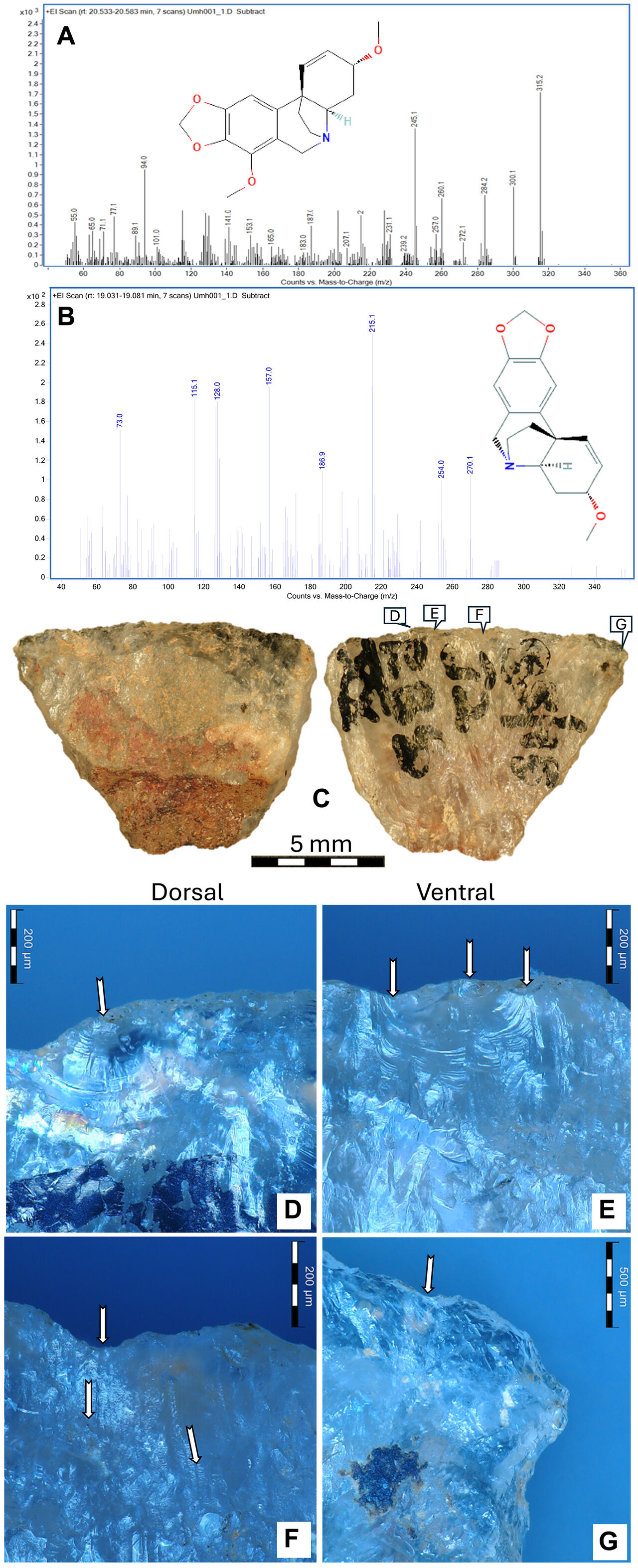 研究チームは、10点の石英製バックド・ミクロリス を化学分析し、そのうち 5点 から毒性植物に由来する化合物を確認した。検出されたのは buphanidrine と epibuphanisine で、どちらも南部アフリカの ヒガンバナ科植物 に由来し、もっとも有力な候補は Boophone disticha だという。現地ではこの植物は gifbol とも呼ばれ、歴史時代にも矢毒として知られていた。