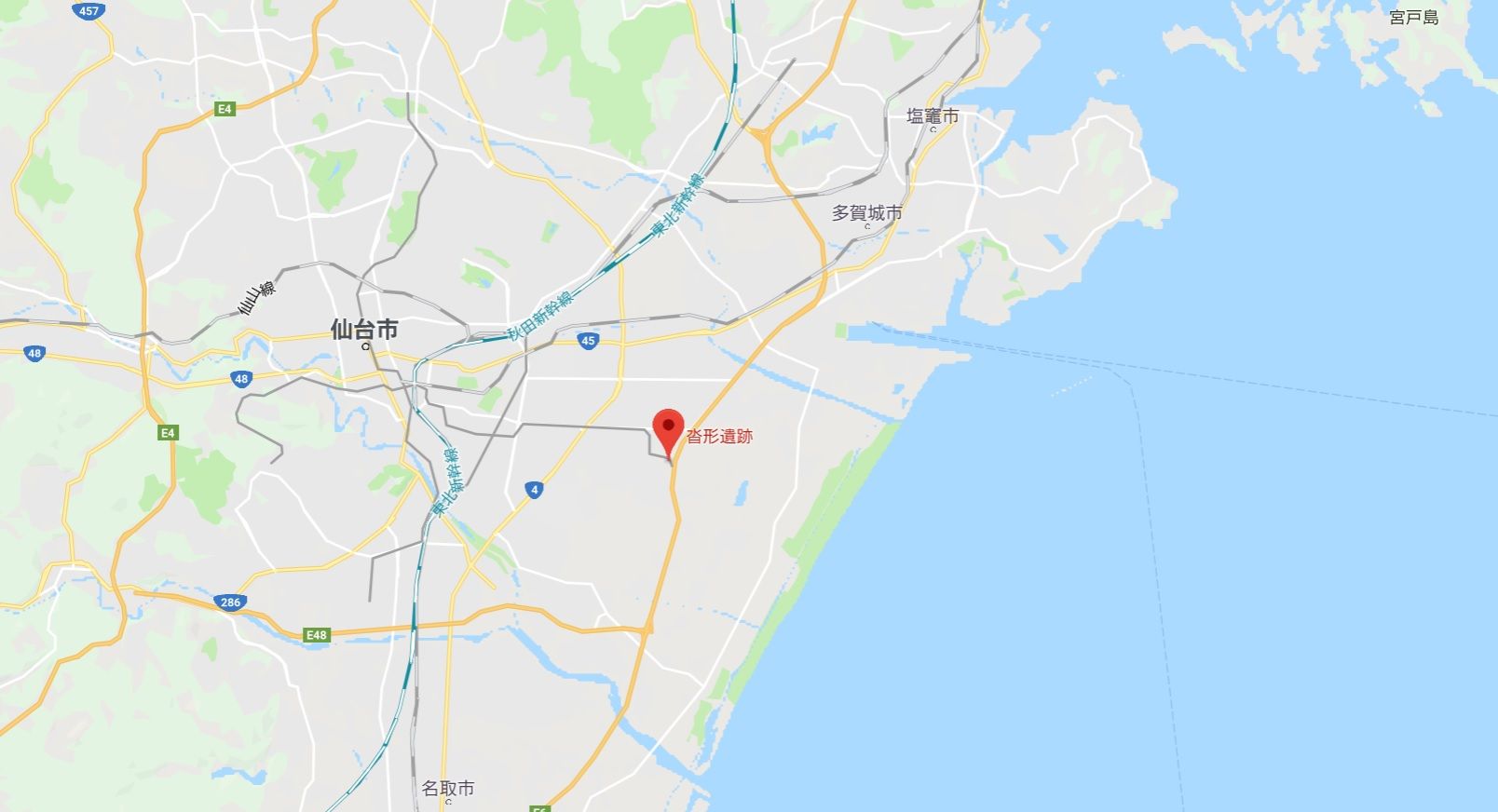 ↑仙台市、沓形遺跡の所在(「Googleマップ」より画像を転載)