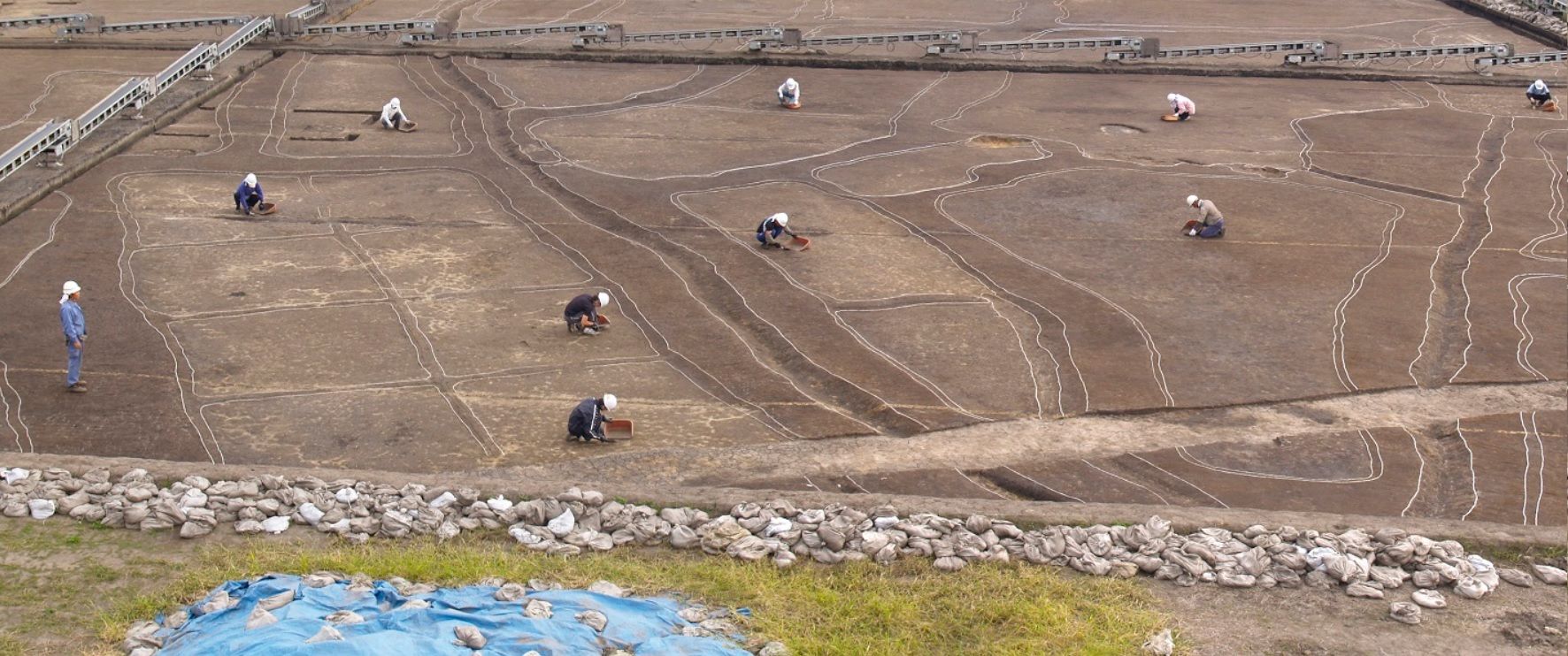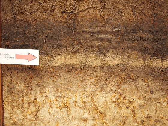 この砂の層によって弥生時代中期の水田跡は完全に覆われており、津波被害によって廃絶したことが推定されました。