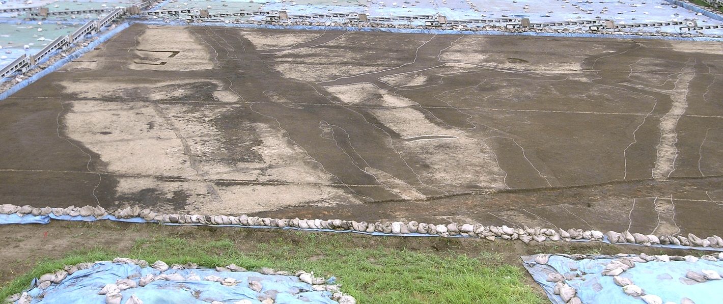 また沓形遺跡は2014年まで複数回の発掘調査が実施され、弥生時代中期に営まれていた水田域は東西約300m、南北約1.2km、面積20haを超える広範囲に及ぶことが判明しました。