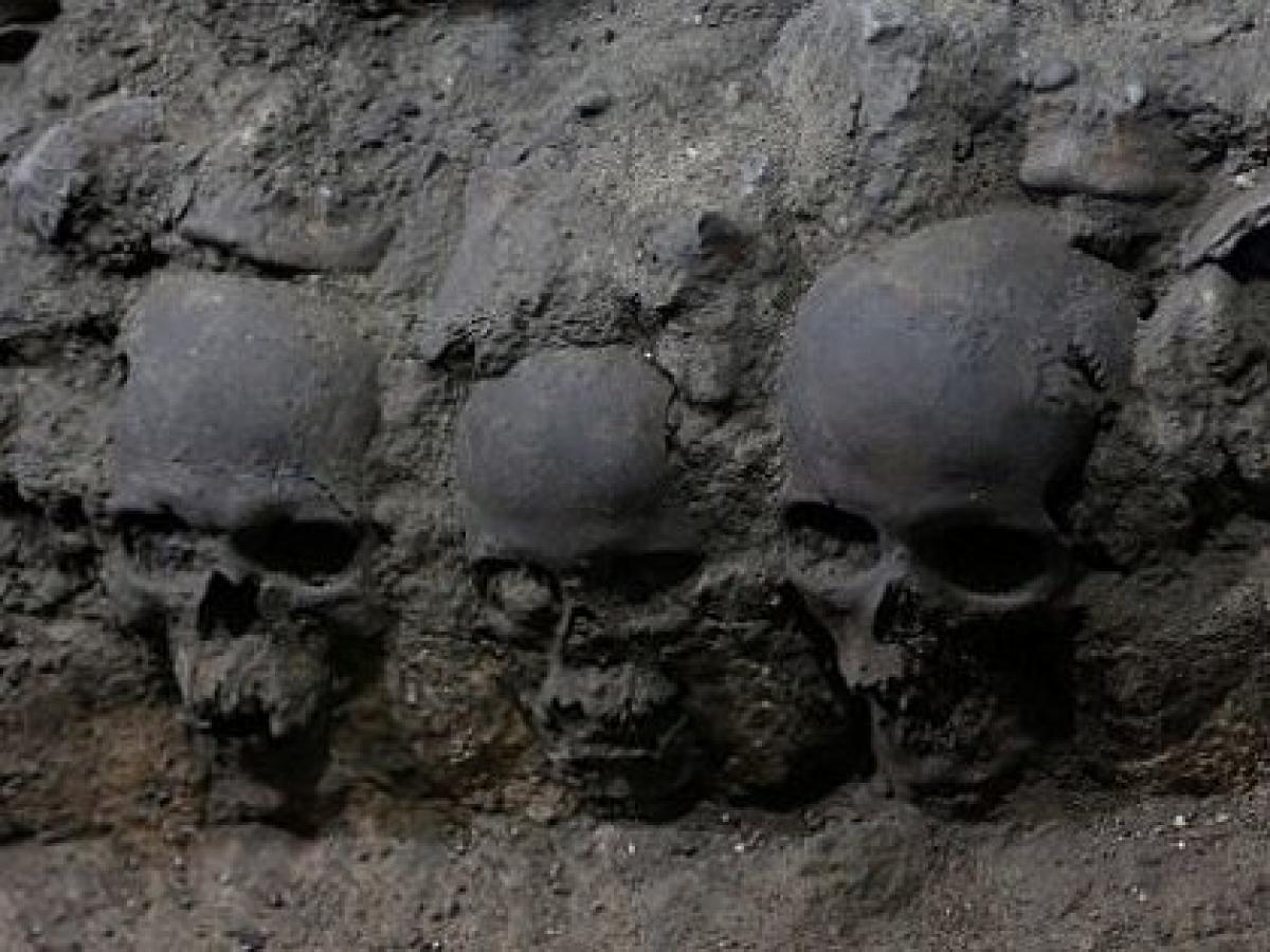 ↑骸骨の塔の様子(「Mail Online」の記事内画像より転載;credit: REUTERS)