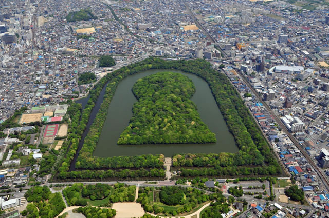 ↑大仙陵古墳の鳥瞰写真(「コトバンク」より画像を転載)